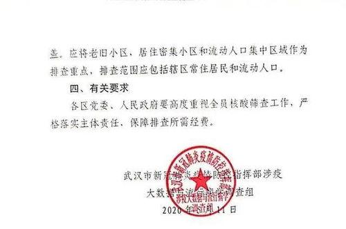 首先,咱们得先了解一下这次的通知都有哪些内容。据可靠消息,武汉市的核酸检测政策又有了新的调整。这次调整主要包括以下几个方面: